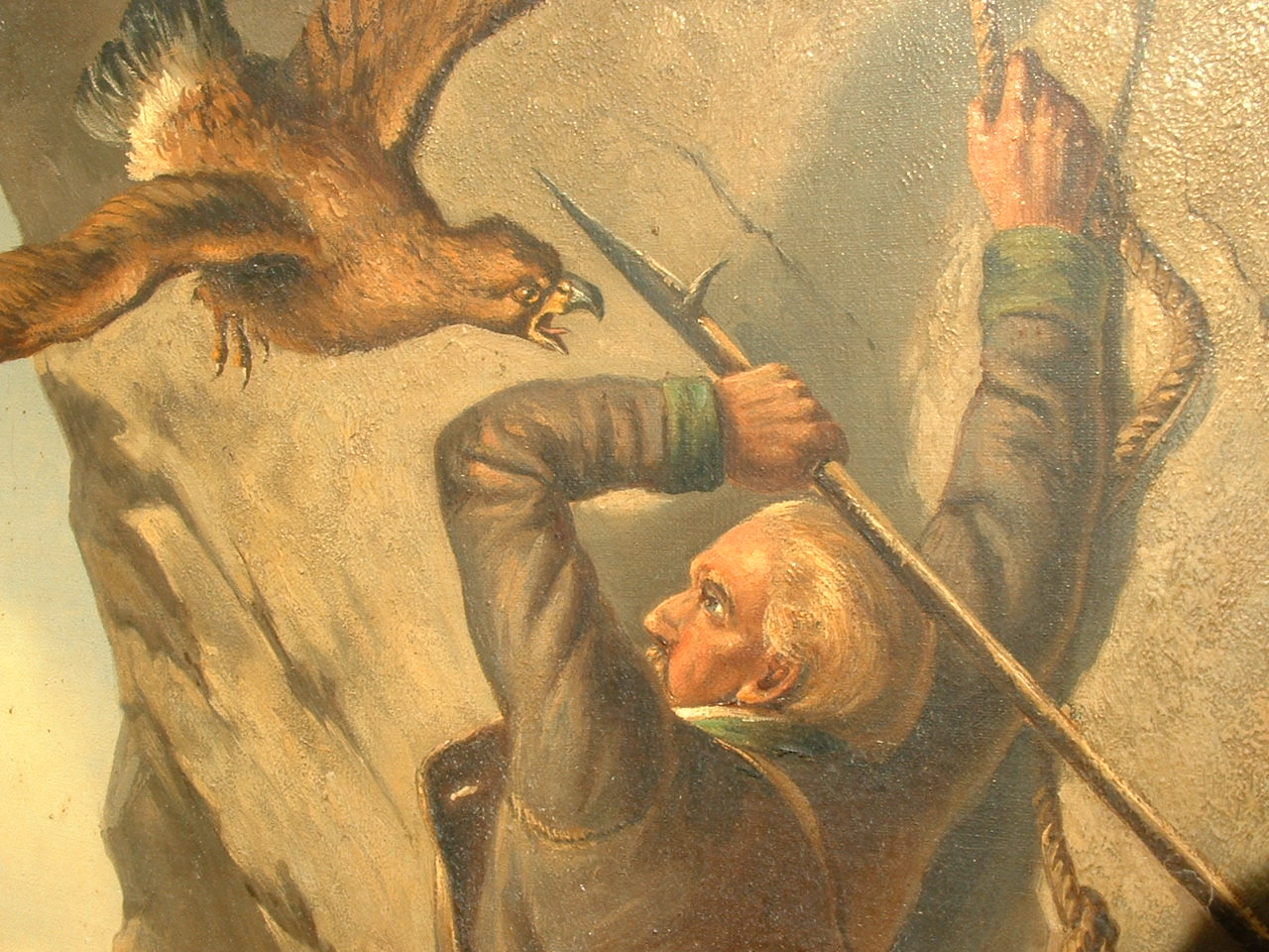 Am oberen Ende der Treppe hing dieses Bild an der Wand.